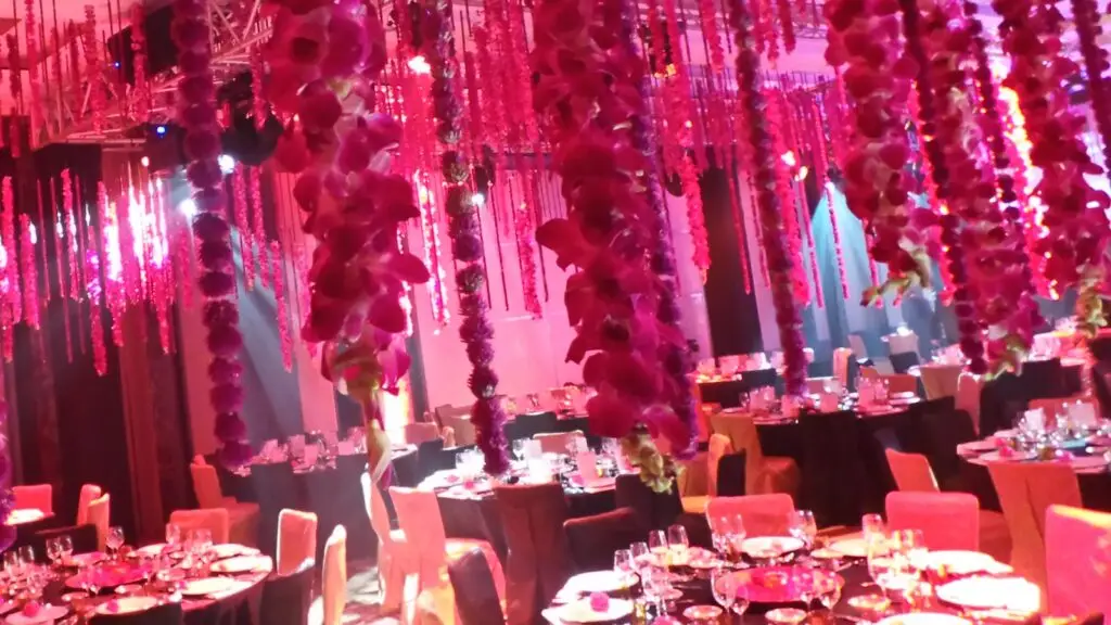 A stunning dinner decoration with 4.000 meter garlands, made out of 250.000 flowers.