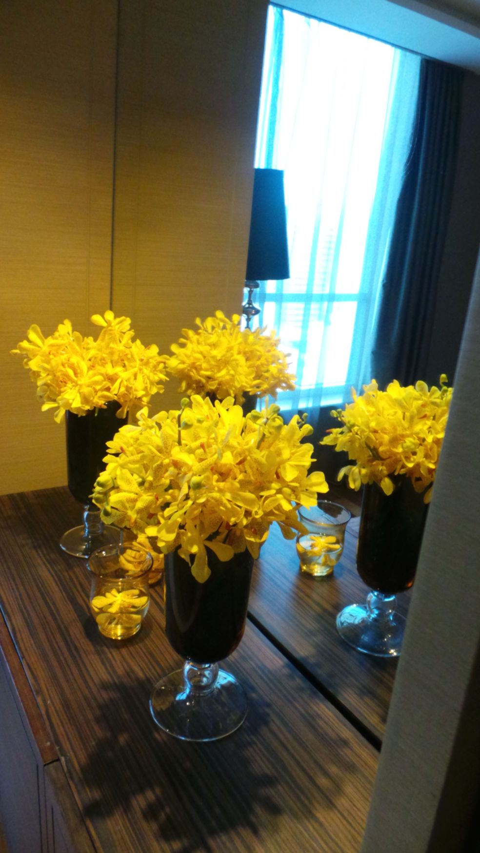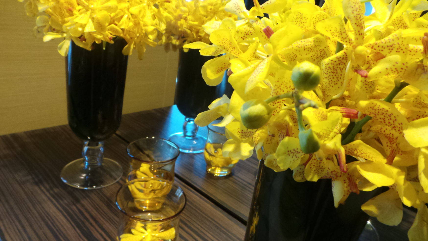 Combining drinks with flowers: a bright setup of Yellow Orchids and refreshing Lemonade!
